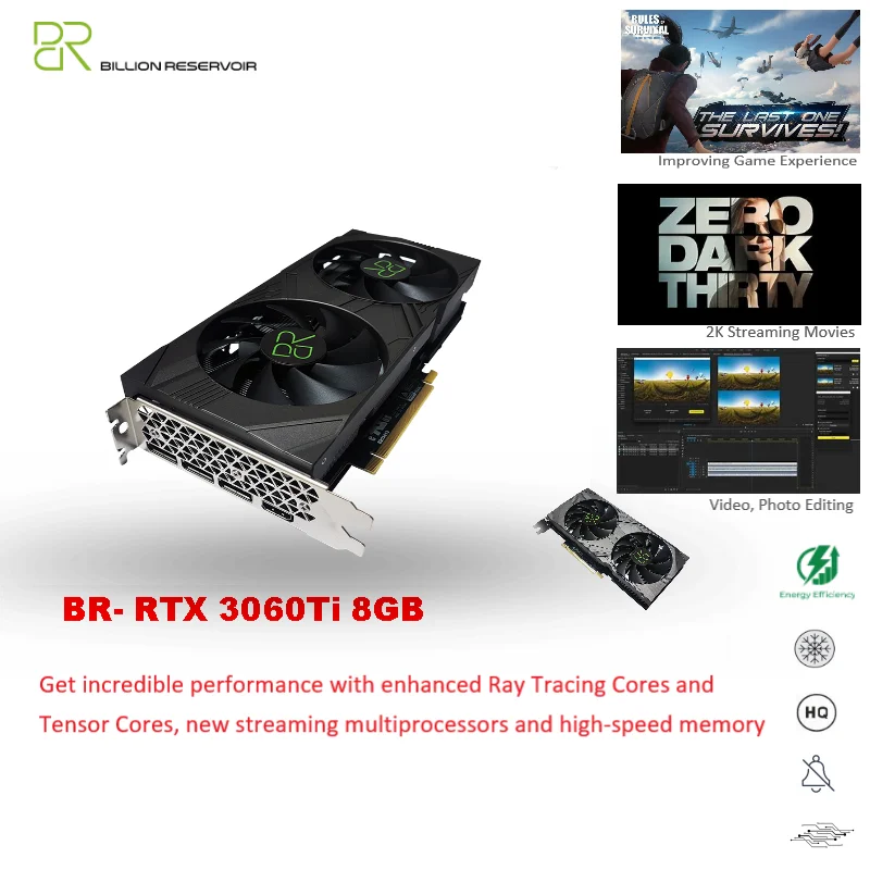 Placa gráfica BR RTX 3060Ti, GPU NVIDIA, GDDR6, DP * 3, 256bit, PCI Express 4.0